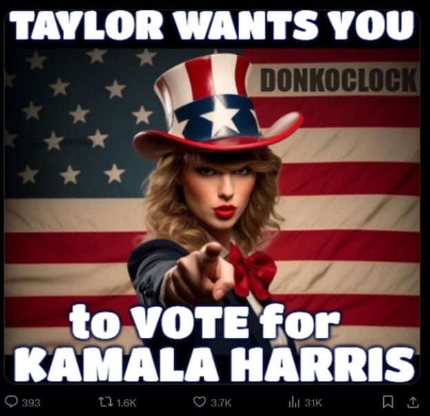 And in what has been called ‘the most important celebrity endorsement ever’, more than 283 million Taylor Swift fans just got their wish: a long-awaited thumbs-up from Ms. Swift to vote for Kamala!