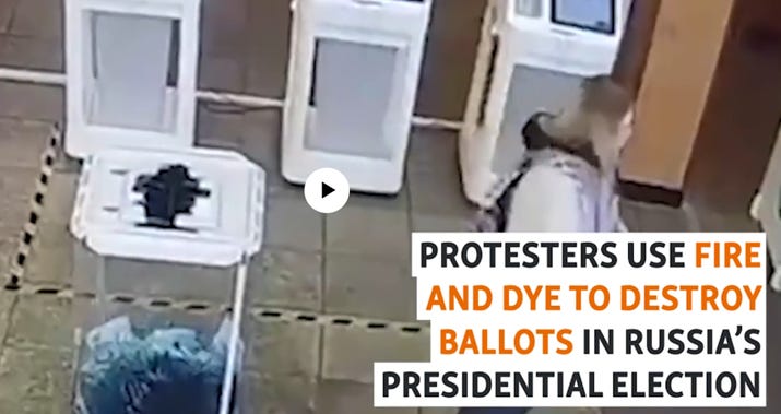 I had not heard of the “ballots in flames” idea, but there could be a “noon revolt” on March 17th, one of the three days of voting. That would occur when everyone who disagrees with the illegality of Putin’s actions comes out to the voting stations at noon, do that people who share that opinion can see that they are not alone.