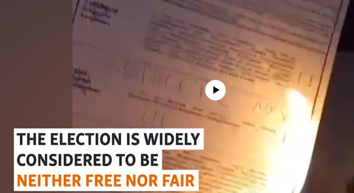 In Moscow, a video showed an elderly woman setting a voting booth alight. Smoke filled the polling station. She was subsequently detained by police.