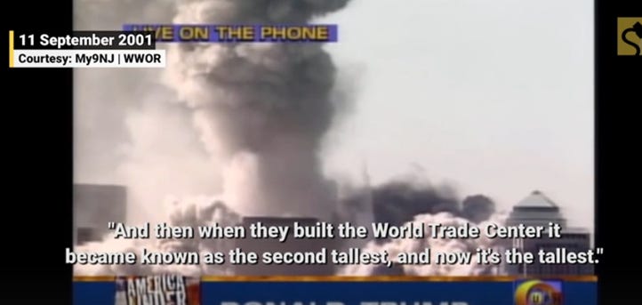 When the World Trade Centre went down on 9/11, Trump’s reaction was to say that he now had the tallest building in New York.