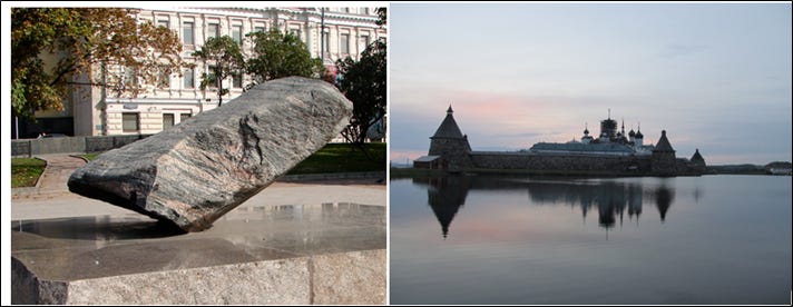 It was in the Solovetsky Islands in the desolate northern White Sea that the emerging Soviet Union built its first camp for political prisoners in 1923. When the Soviet Union fell in 1990, a stone was brought from those Islands to Moscow and put on a plinth inscribed “To the victims of political repression”.