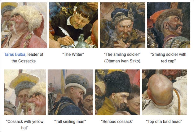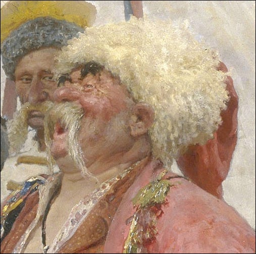 Even the figures in the painting included men of Ukrainian, Russian, Cossack, Jewish and Polish ancestry. They were friends of the painter Ilya Repin and are depicted well in this article.