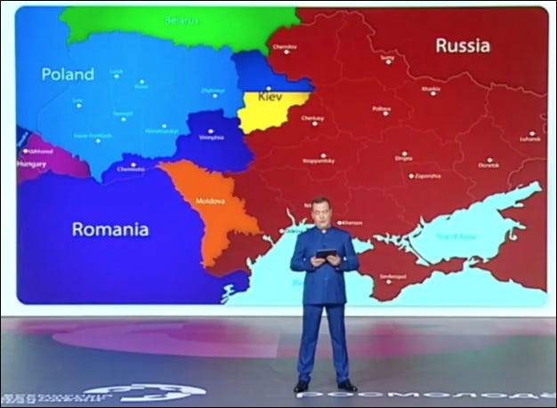 Medvedev’s map is disturbing vision of what would happen to Ukraine under a “white flag of negotiation”.…i.e. defeat.