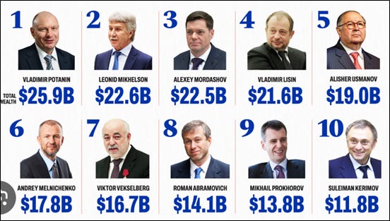 All of Russia’s top billionaire class have their wealth based in extraction industries, providing the infrastructure to produce oil and gas:
