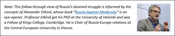It is also important to understand that it will not change unless the current social structure is allowed to break free – something that only happens when Russia is defeated in war.